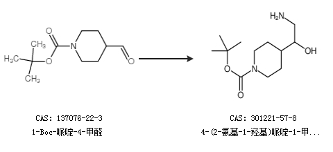 1.通过1-Boc-哌啶-4-甲醛合成4-(2-氨基-1-羟基)哌啶-1-甲酸叔丁酯