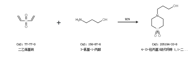1.通过二乙烯基砜和3-氨基-1-丙醇合成4-(3-羟丙基)硫代吗啉 1,1-二氧化物,收率约92%;