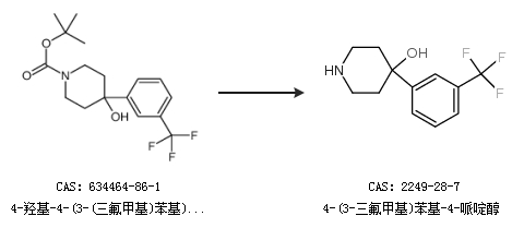 1.通过4-羟基-4-(3-(三氟甲基)苯基)哌啶-1-羧酸叔丁酯合成4-(3-三氟甲基)苯基-4-哌啶醇