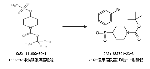 2.通过1-Boc-4-甲烷磺酰氧基哌啶合成4-(3-溴苯磺酰基)哌啶-1-羧酸叔丁酯