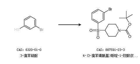 1.通过3-溴苯硫酚合成4-(3-溴苯磺酰基)哌啶-1-羧酸叔丁酯