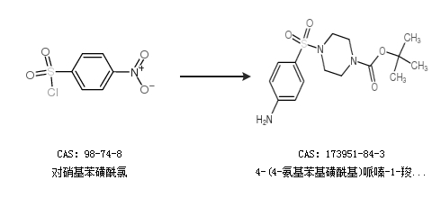 2.通过对硝基苯磺酰氯合成4-(4-氨基苯基磺酰基)哌嗪-1-羧酸叔丁酯