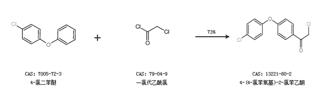 1.通过4-氯二苯醚和一氯代乙酰氯合成4-(4-氯苯氧基)-2-氯苯乙酮,收率约73%;