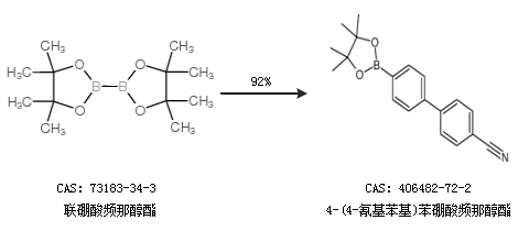 1.通过联硼酸频那醇酯合成4-(4-氰基苯基)苯硼酸频那醇酯,收率约92%;