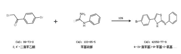 1.通过2,4''-二溴苯乙酮和苯基硫脲合成4-(4-溴苯基)-N-苯基-2-氨基噻唑,收率约10%;