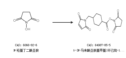英文别名 N-Succinimidyl 4-(Maleimidomethyl)cyclohexane-1-carboxylate;N-Succinimidyl 4-(N-maleimidomethyl)cyclohexane-1-carboxylate;