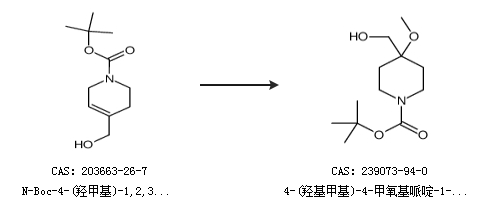 2.通过N-Boc-4-(羟甲基)-1,2,3,6-四氢吡啶合成4-(羟基甲基)-4-甲氧基哌啶-1-羧酸叔丁酯