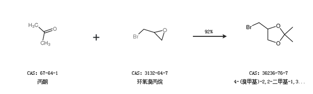 2.通过丙酮和环氧溴丙烷合成4-(溴甲基)-2,2-二甲基-1,3-二氧戊环,收率约92%;