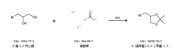 1.通过3-溴-1,2-丙二醇和碳酸钾合成4-(溴甲基)-2,2-二甲基-1,3-二氧戊环,收率约52%;