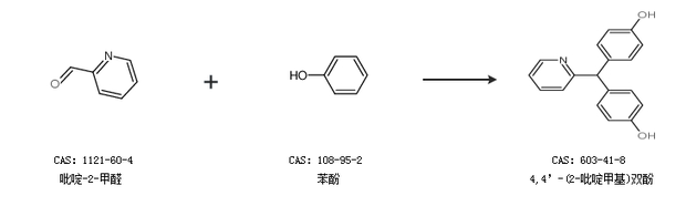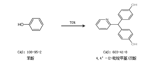 1.通过苯酚合成4,4’-(2-吡啶甲基)双酚,收率约70%;
