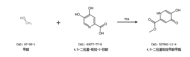 1.通过甲醇和4,5-二羟基-吡啶-2-羧酸合成4,5-二羟基吡啶甲酸甲酯,收率约75%;