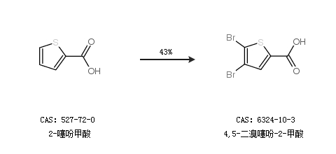1.通过2-噻吩甲酸合成4,5-二溴噻吩-2-甲酸,收率约43%;