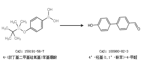 2.通过4-(叔丁基二甲基硅氧基)苯基硼酸合成4’-羟基(1,1’-联苯)-4-甲醛