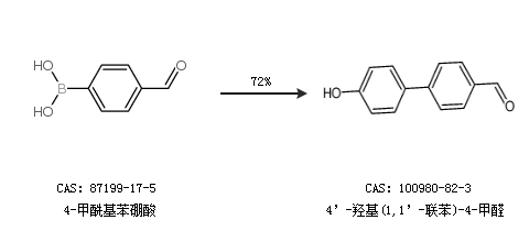 1.通过4-甲酰基苯硼酸合成4’-羟基(1,1’-联苯)-4-甲醛,收率约72%;