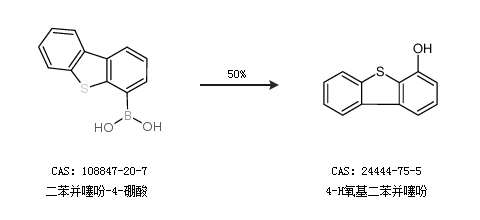 1.通过二苯并噻吩-4-硼酸合成4-H氧基二苯并噻吩,收率约50%;