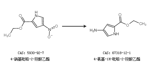 1.通过4-硝基吡咯-2-羧酸乙酯合成4-氨基-1H-吡咯-2-羧酸乙酯