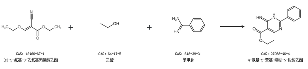 2.通过(E)-2-氰基-3-乙氧基丙烯酸乙酯、乙醇和苯甲脒合成4-氨基-2-苯基-嘧啶-5-羧酸乙酯