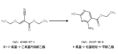 2.通过(E)-2-氰基-3-乙氧基丙烯酸乙酯合成4-氨基-2-羟基嘧啶-5-甲酸乙酯