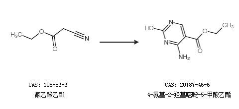 1.通过氰乙酸乙酯合成4-氨基-2-羟基嘧啶-5-甲酸乙酯