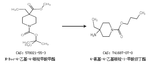 2.通过N-Boc-4-乙基-4-哌啶甲酸甲酯合成4-氨基-4-乙基哌啶-1-甲酸叔丁酯
