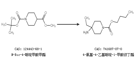 1.通过N-Boc-4-哌啶甲酸甲酯合成4-氨基-4-乙基哌啶-1-甲酸叔丁酯