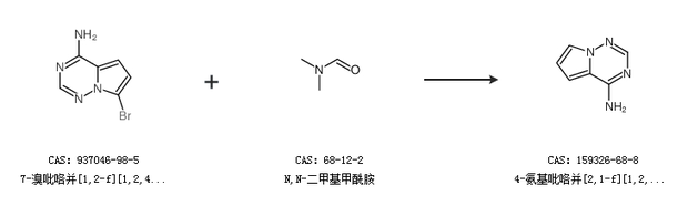 1.通过7-溴吡咯并[1,2-f][1,2,4]噻嗪-4-胺和N,N-二甲基甲酰胺合成4-氨基吡咯并[2,1-f][1,2,4]三嗪