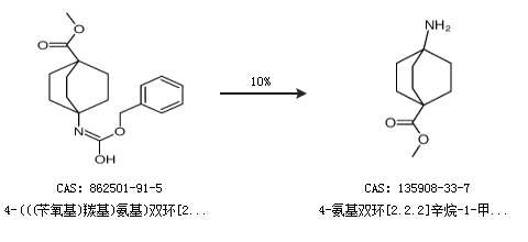 1.通过4-(((苄氧基)羰基)氨基)双环[2.2.2]辛烷-1-羧酸甲酯合成4-氨基双环[2.2.2]辛烷-1-甲酸甲酯,收率约10%;