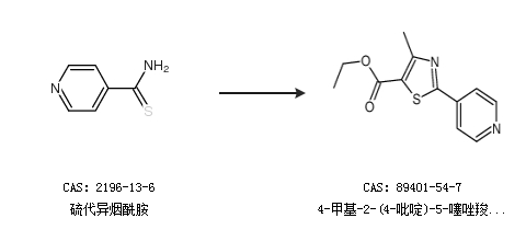 2.通过硫代异烟酰胺合成4-甲基-2-(4-吡啶)-5-噻唑羧酸乙酯