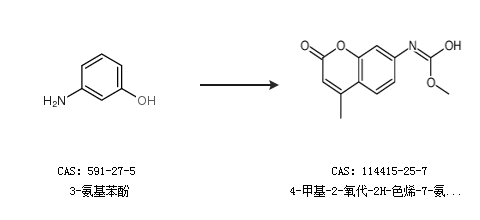 1.通过3-氨基苯酚合成4-甲基-2-氧代-2H-色烯-7-氨基甲酸甲酯