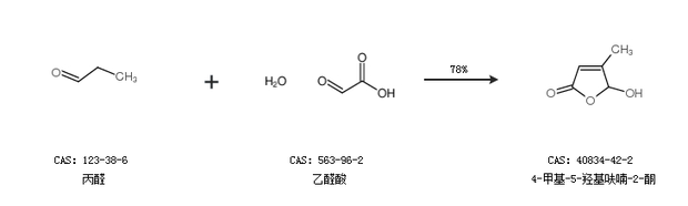 2.通过丙醛和乙醛酸合成4-甲基-5-羟基呋喃-2-酮,收率约78%;