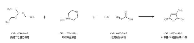 1.通过丙醛二乙基乙缩醛、吗啡啉盐酸盐和乙醛酸水合物合成4-甲基-5-羟基呋喃-2-酮