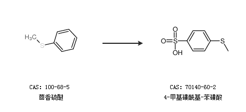 英文别名 4-(Methylthio)benzenesulfonic acid;Thioanisolsulfonsaeure;4-Methylmercapto-benzolsulfonsaeure;4-methylsulfanyl-benzenesulfonic acid;Thioanisol-sulfonsaeure-(4);