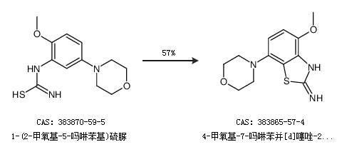 1.通过1-(2-甲氧基-5-吗啉苯基)硫脲合成4-甲氧基-7-吗啉苯并[d]噻唑-2-胺,收率约57%;