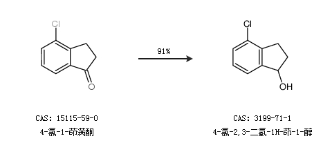 1.通过4-氯-1-茚满酮合成4-氯-2,3-二氢-1H-茚-1-醇,收率约91%;
