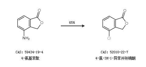 2.通过4-氨基苯酞合成4-氯-3H-1-异苯并呋喃酮,收率约65%;