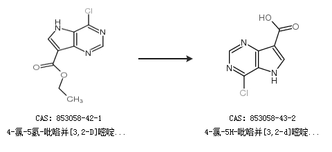 1.通过4-氯-5氢-吡咯并[3,2-D]嘧啶-7-甲酸乙酯合成4-氯-5H-吡咯并[3,2-d]嘧啶-7-甲酸