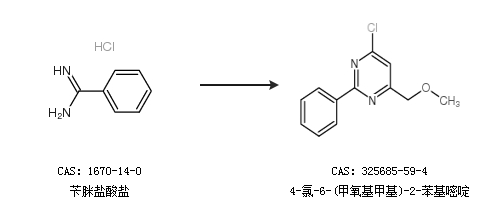 2.通过苄脒盐酸盐合成4-氯-6-(甲氧基甲基)-2-苯基嘧啶