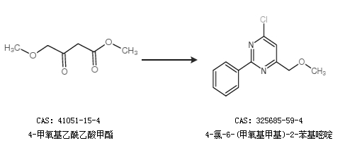 1.通过4-甲氧基乙酰乙酸甲酯合成4-氯-6-(甲氧基甲基)-2-苯基嘧啶