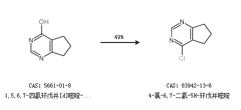 1.通过1,5,6,7-四氢环戊并[d]嘧啶-4-酮合成4-氯-6,7-二氢-5H-环戊并嘧啶,收率约49%;