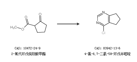 2.通过2-氧代环戊烷羧酸甲酯合成4-氯-6,7-二氢-5H-环戊并嘧啶