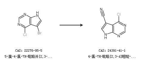 2.通过5-溴-4-氯-7H-吡咯并[2,3-d]嘧啶合成4-氯-7H-吡咯[2,3-d]嘧啶-5-甲腈