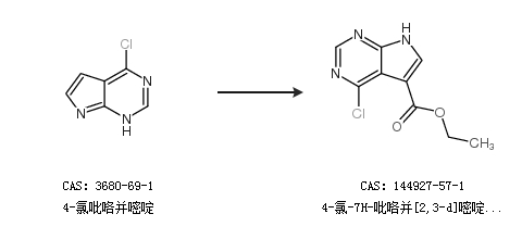 1.通过4-氯吡咯并嘧啶合成4-氯-7H-吡咯并[2,3-d]嘧啶-5-甲酸乙酯