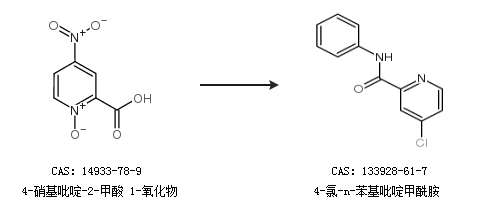 2.通过4-硝基吡啶-2-甲酸 1-氧化物合成4-氯-n-苯基吡啶甲酰胺