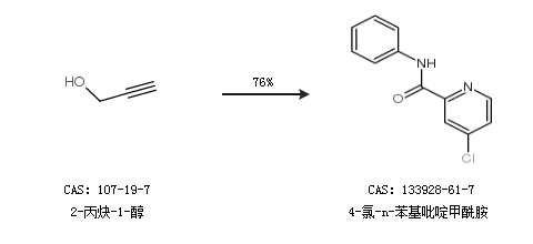 1.通过2-丙炔-1-醇合成4-氯-n-苯基吡啶甲酰胺,收率约76%;