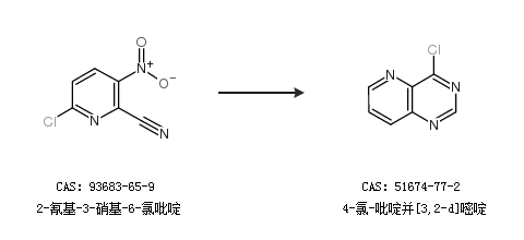 2.通过2-氰基-3-硝基-6-氯吡啶合成4-氯-吡啶并[3,2-d]嘧啶