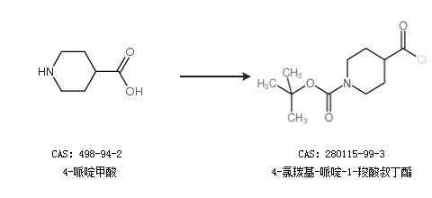 2.通过4-哌啶甲酸合成4-氯羰基-哌啶-1-羧酸叔丁酯