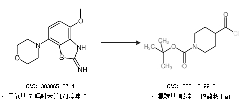 1.通过4-甲氧基-7-吗啉苯并[d]噻唑-2-胺合成4-氯羰基-哌啶-1-羧酸叔丁酯