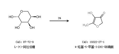 2.通过L-(+)-阿拉伯糖合成4-羟基-5-甲基-3(2H)-呋喃酮,收率约3%;