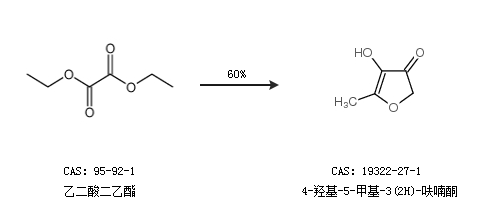 1.通过乙二酸二乙酯合成4-羟基-5-甲基-3(2H)-呋喃酮,收率约60%;