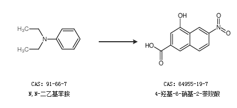 1.通过N,N-二乙基苯胺合成4-羟基-6-硝基-2-萘羧酸